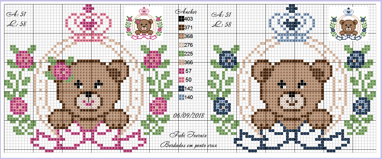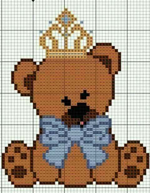 Selecionamos lindas sugestões de Bordado Ponto Cruz de Ursinho Príncipe e Ursinha Princesa em ponto de cruz para enxoval. Trazemos imagens de ursos vestidos de reis e príncipes e ursas vestidas de princesas e rainhas. Faça lindas peças para comemorar o nascimento de bebês ou presentear amigas. São desenhos simples, bonitos e delicados, perfeitos para lembrancinhas ou decoração. Os gráficos são ideais para decorar peças como: Almofadas e Fronhas, Bolsas, Cartões, Quadros, Relógios, Toalha de Banho e Toalha de Rosto, e etc.