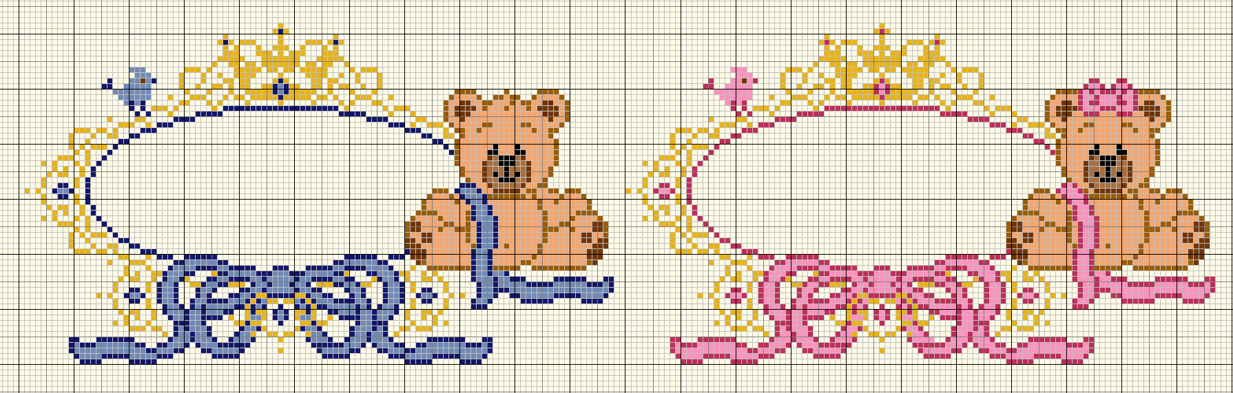 Se gostou das imagens do Ursinho Príncipe e Ursinha Princesa em Ponto Cruz, você pode se interessar pelos outros esquemas da nossa coleção de Gráficos para Bebês e Enxoval e Kit Maternidade