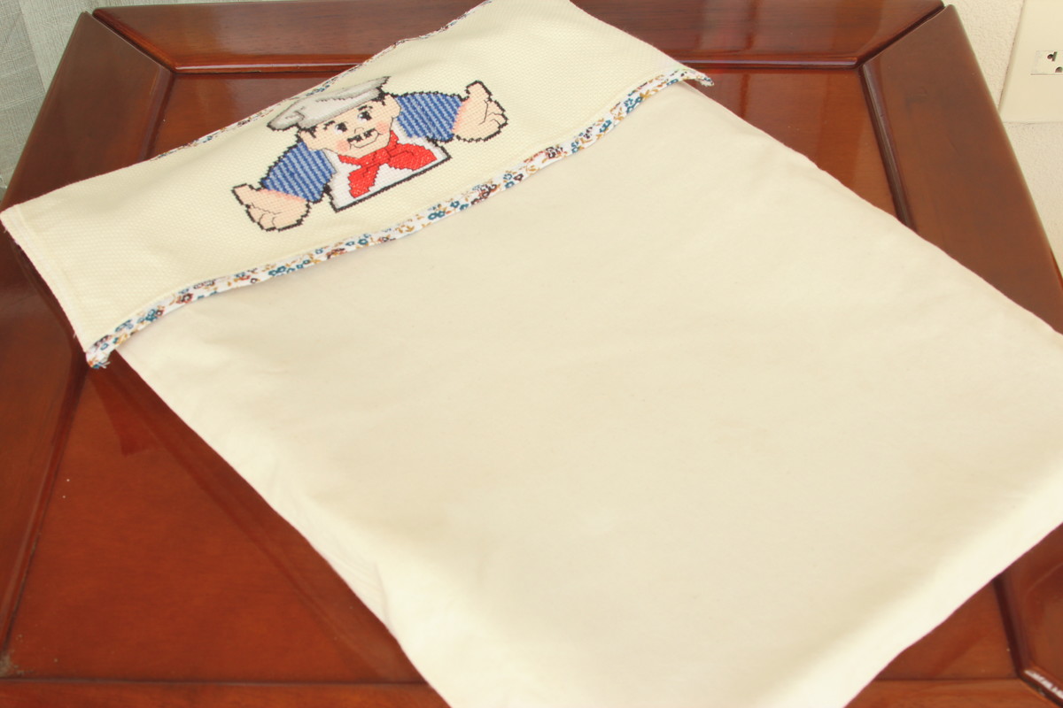 Este certamente é um item muito útil para seu Jogo de Cozinha em ponto cruz, tanto para afastar insetos das travessas quando deixadas sob a mesa ou para transportá-las para a casa de nossos familiares ou amigos. É um ótimo acessório para transportar tabuleiros quentes, já que suas alças evitam que toquemos no fundo, ou mesmo para levarmos pratos sem que virem ou entornem para um lanche ao ar livre. São peças grandes, então barrados ou palavras são ideais para decorar essas capas.